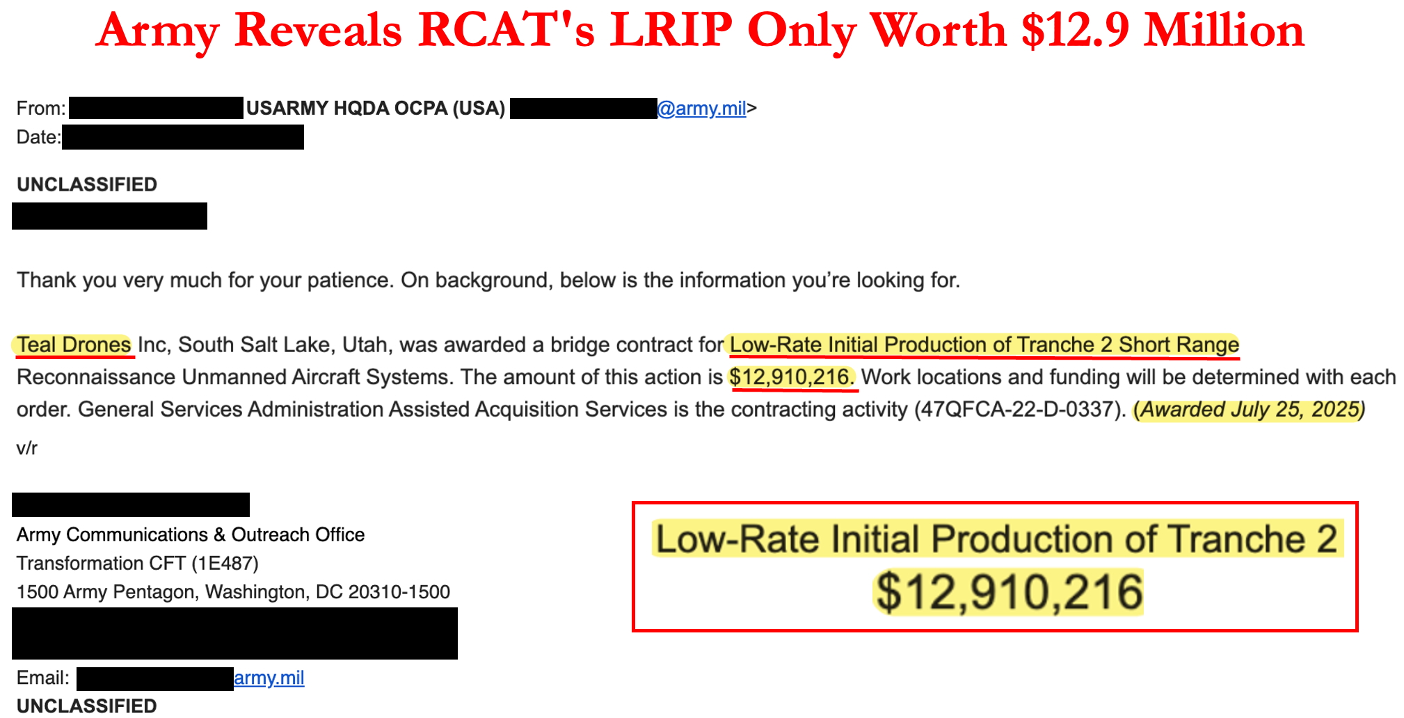 Read MoreRed Cat (RCAT) – FOIAs Reveal Key Army Contract Way Smaller Than Claimed; More Hype & Chinese Parts Exposed; Guidance Miss Coming