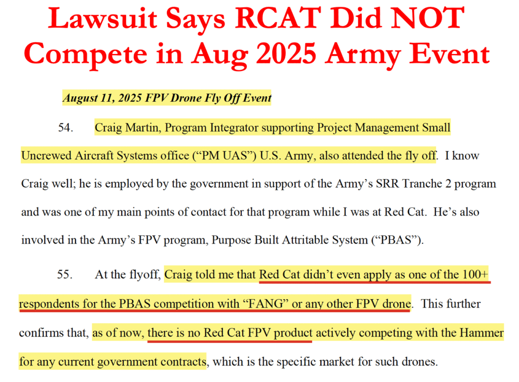 - Red Cat Did NOT Participate in Army’s Aug 2025 Flyoff – Employee said RCAT had “Nothing Like” What Was Promised