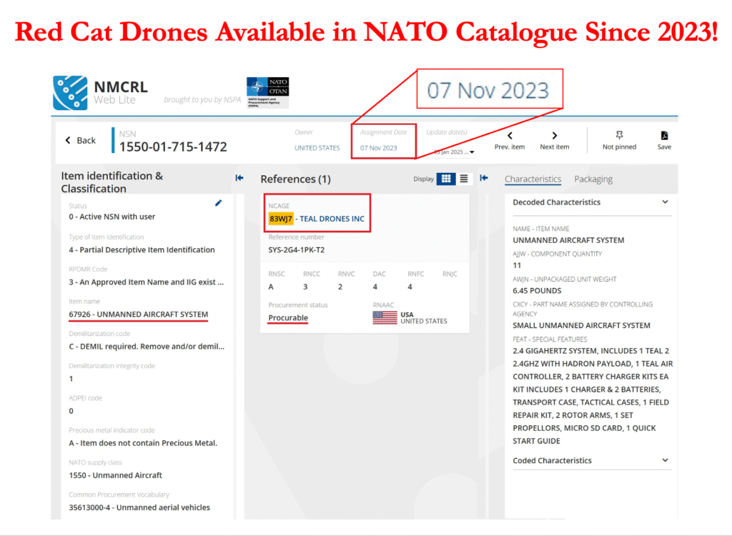 NATO False Hopes – Red Cat Has Been in NATO Catalogue since 2023 But Still De Minimis Sales