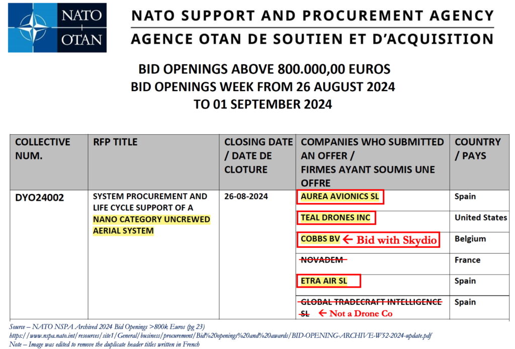 Skydio, a private drone competitor, has managed to win the actual NATO sales. Skydio supplies 15 NATO member countries.