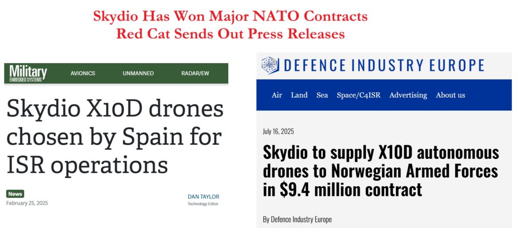 While Red Cat’s “participation ribbon” looks nice on the wall and in a press release, it doesn’t add up to much in the field. The NATO sales have still all been going to Skydio.